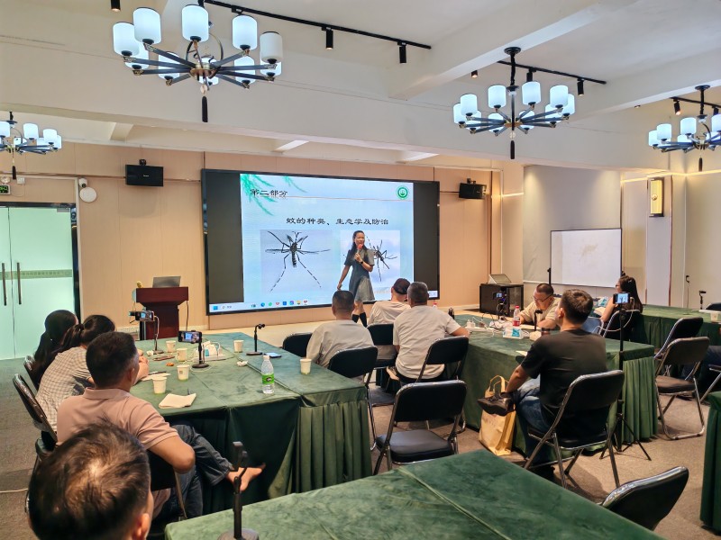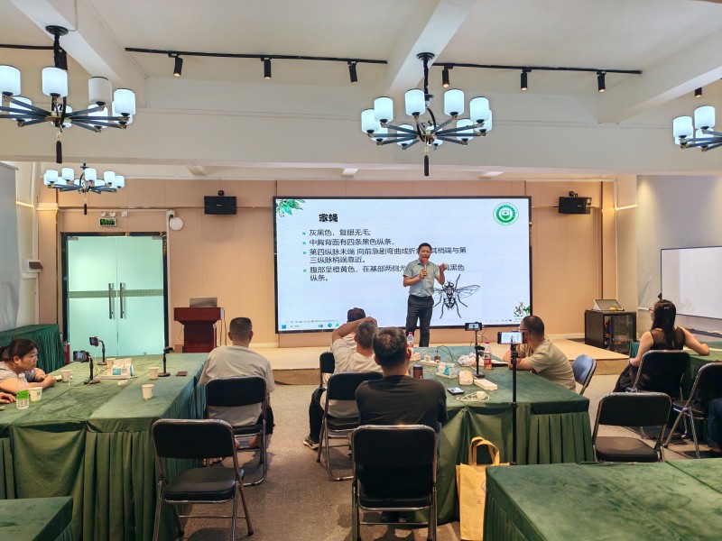 苍蝇繁殖超级快,一生可“生产”500多粒卵,如果发现一只,就说明附近有它们的孳生地,需要及时清理卫生,垃圾日产日清,运用物理清理+化学处理+环境治理,这样才能较快捷的治理虫害,使密度下降,得到有效灭杀。林老师幽默风趣地分享着苍蝇的那些事儿,学员们也是乐此不疲。